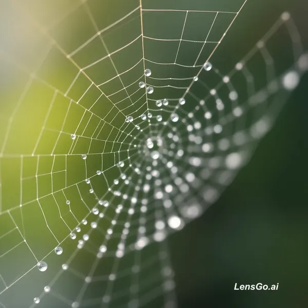 AI Image: Macro photograph of morning dew on spider web, bokeh background
