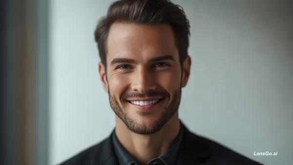 AI Image: Professional LinkedIn headshot photo, natural lighting, clean background, confident smile, studio qu