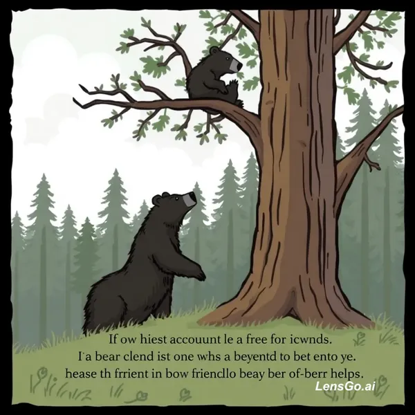 AI Image: The story is about two friends who encounter a bear in the forest. One friend climbs a tree, abandon