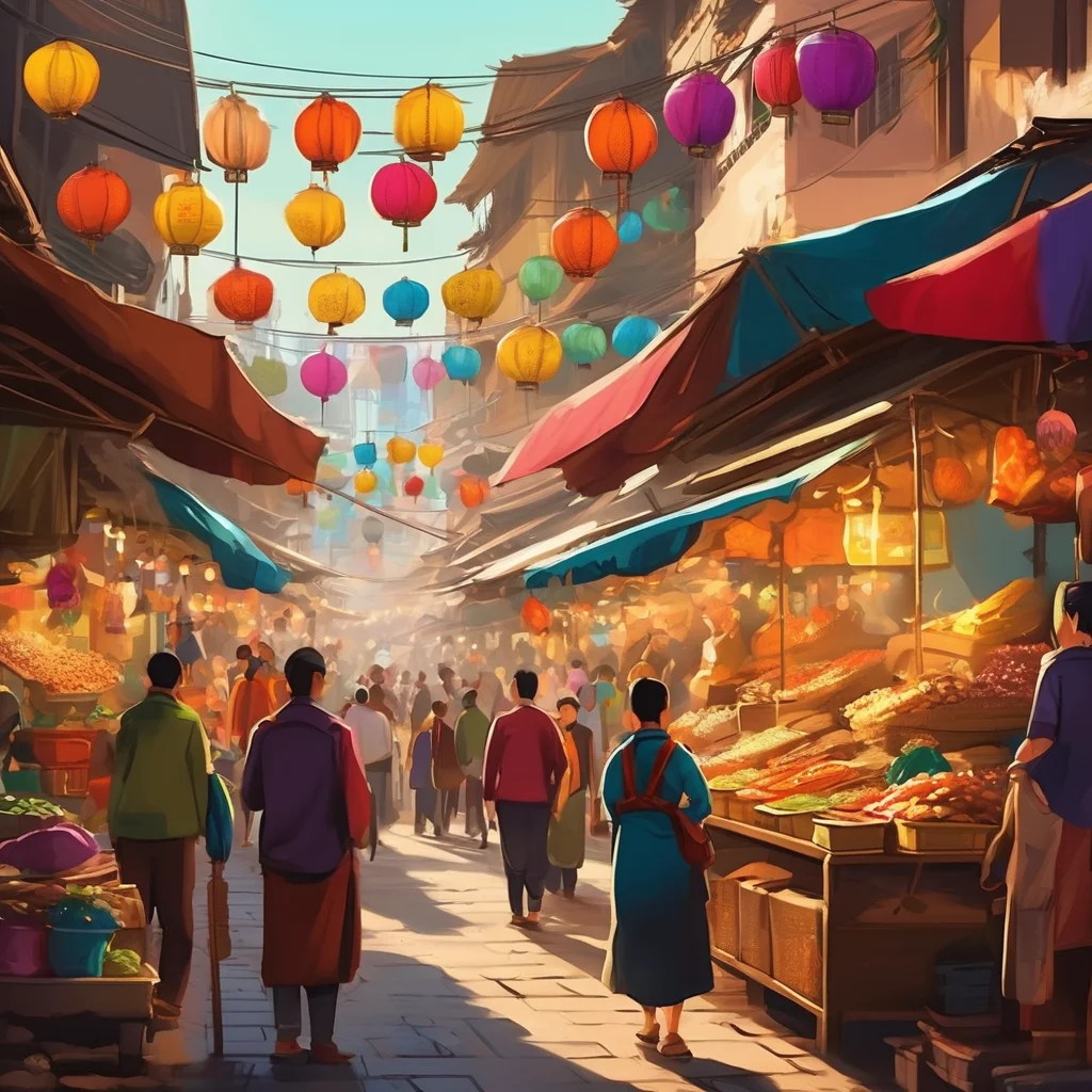 AI Image: bustling colorful local market, authentic street food stalls, cultural scene, warm lighting, travel