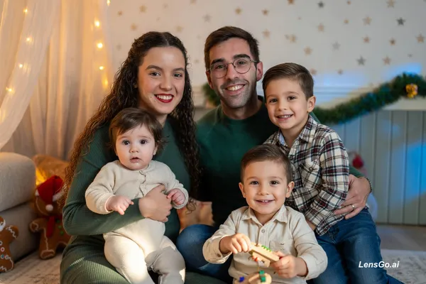 AI Image: ultra realistic family portrait, parents with two boys and a baby girl (8 months old), soft natural