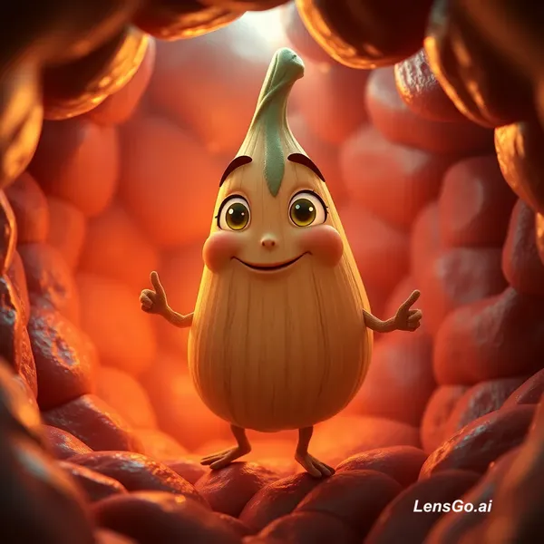 (Create a highly detailed cinematic 3D animated vertical 9:16 scene where a clove is transformed into a living, friendly character. The clove has expressive warm eyes, a gentle smile, and soft glowing textures with woody, natural details. It moves gracefully with calm, confident body language. Personality is helpful, healing, and protective. Set the scene inside a human mouth and stomach environment shown in a positive way, with soft golden light, clean tissues, gentle energy waves, and signs of relief and comfort. The clove spreads soothing light while repairing and calming the surroundings. Style: Pixar-level 3D animation mixed with subtle dark cinematic realism. Use dramatic volumetric lighting, cinematic shadows, and emotional atmosphere. Camera: close-up dynamic angle, slightly rotating around the character. Mood: inspiring, comforting, attention-grabbing. Ultra high detail, realistic textures, depth of field. No text. No captions. No logos.Image aspect ratio 9.16 ratio)