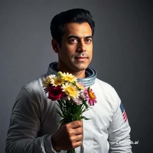 AI Image: Studio portrait of an astronaut holding flowers, dramatic lighting . Salman khan actor is in the pic