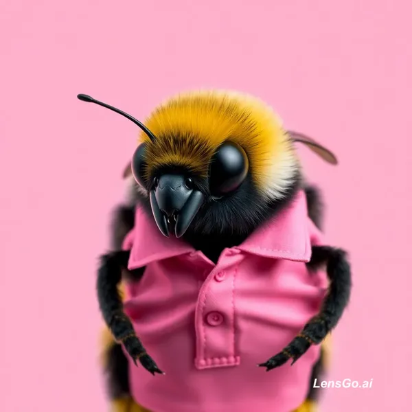 AI Image: A bumblebee wearing a pink polo shirt and stand-up collar