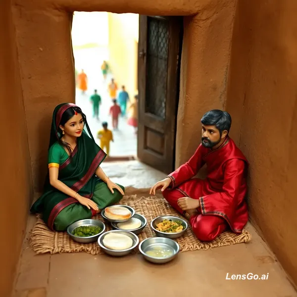 AI Image: Shared meal scene. Characters present: Doll Wife and Doll Husband (main characters) and distant gene