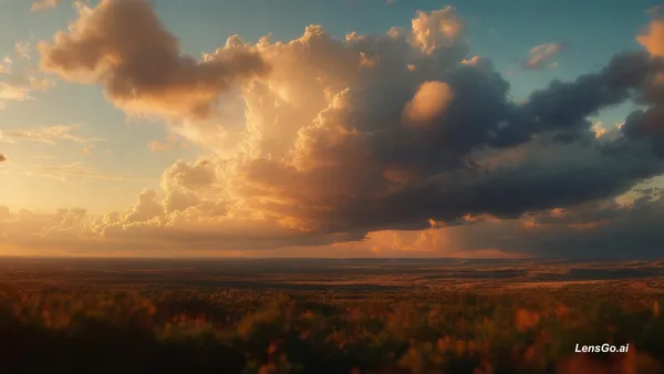 Breathtaking cinematic landscape photo, golden hour lighting, dramatic clouds, vibrant colors, ultra-wide angle, 8K resolution, shot on modular 8K digital cinema camera, standard prime lens, 35mm standard natural perspective, f/1.4 shallow depth of field, creamy bokeh, professional cinematography, ultra-detailed, 8K resolution, film grain, cinematic color grading