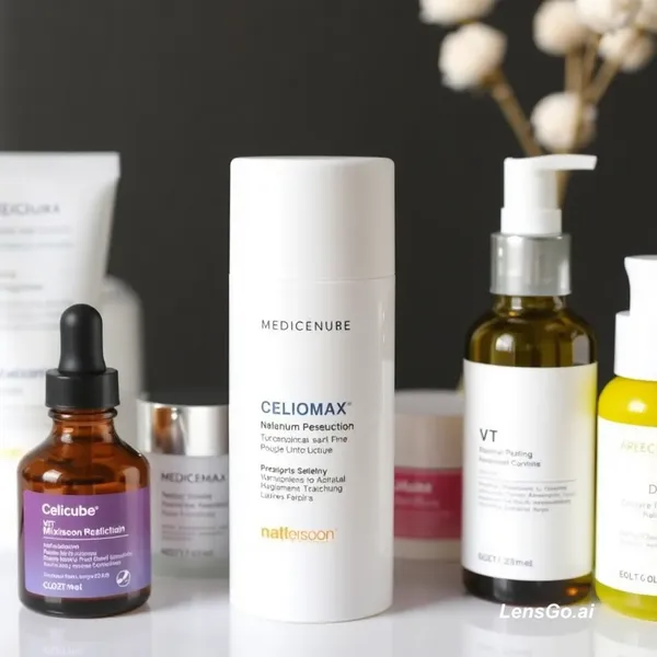 AI Image: Productos de skincare coreanos, marcas Medicube, Celimax, Numbuzim, VT, Mixsoon, Anua, Dr Althea, CO