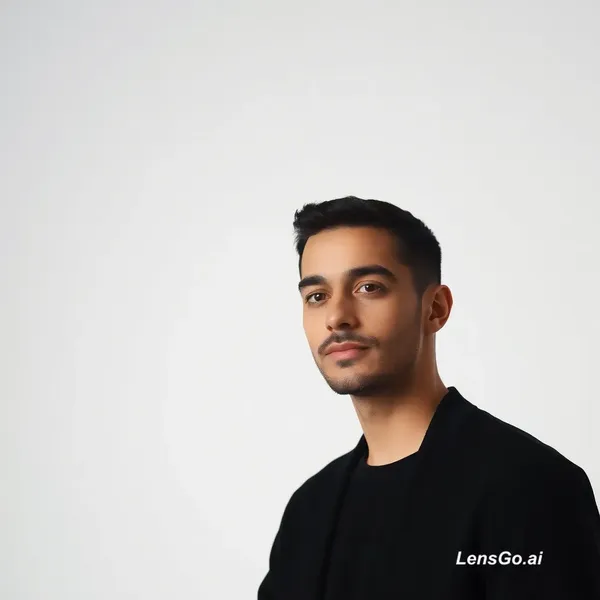 AI Image: Creative professional portrait of a graphic designer, modern minimal style, wearing black or neutral