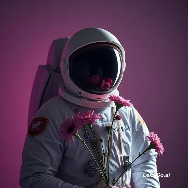 AI Image: Studio portrait of an astronaut holding flowers, dramatic lighting