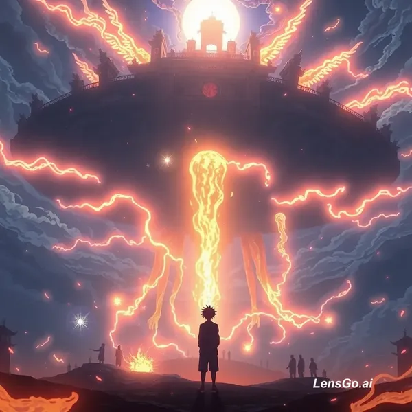 AI Image: cinematic anime scene, massive floating spiritual academy, glowing runes in the sky, students using