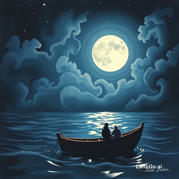 AI Image: The silver moon is shining now Upon your sleepy little brow Let the velvet shadows creep Guide you s