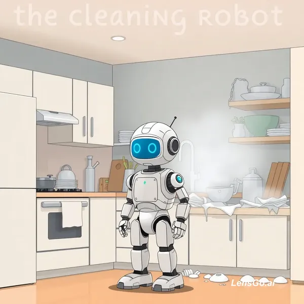 AI Image: תעשה לי סרטון של זה 🎬 The Cleaning Robot 🎥 Scene 1 Prompt for AI: "Small home kitchen, friendly ho