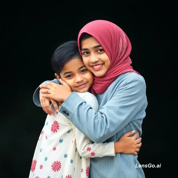 AI Image: a boy called zubair, and a girl called marokh hugs each other , make it beautifull