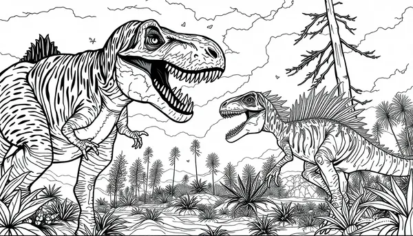 AI Image: Mortem rex vs indoraptor coloring page