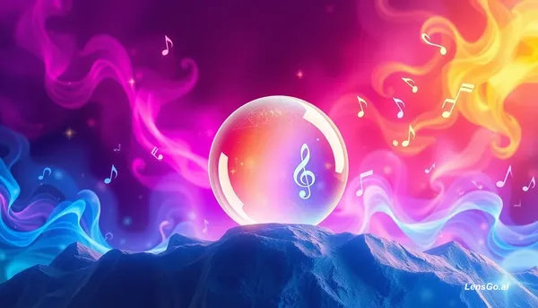 AI Image: Pode criar uma imagem com símbolos musicais e uma vitrola tocando em cima de uma estante com cores v
