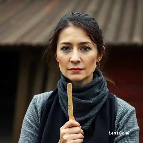 AI Image: A strict woman in her 30s holding a thin wooden stick