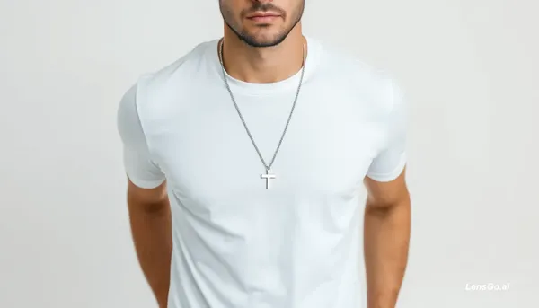 AI Image: Commercial jewelry campaign photo. Athletic male model late 20s, standing naturally with slight weig