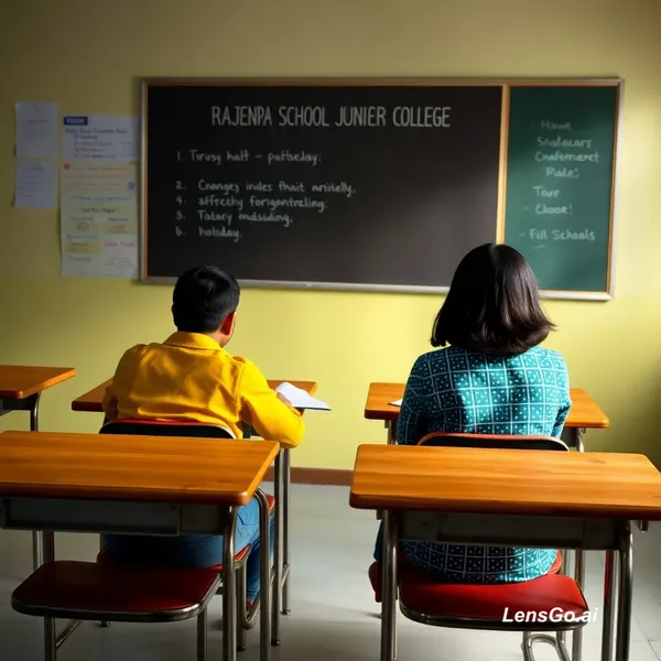 AI Image: Prompt Rajendra School Junior College ka classroom. Teacher class le rahi hai. Students thode sharar