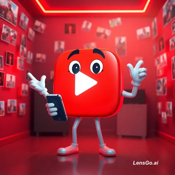 AI Image: A Pixar-style 3D render of the YouTube app icon as a lively character. The red play-button logo is i