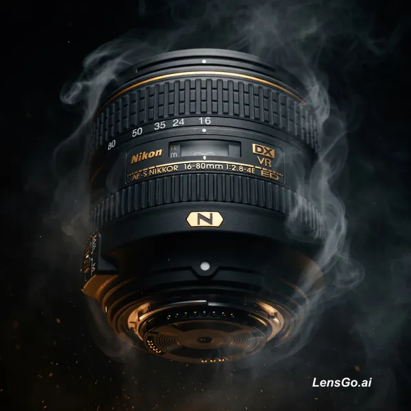 I have an image of a product ([Nikon]) that I will use as a reference. Generate 3 different high-end advertising image prompts featuring this product from distinct camera angles (e.g., front hero shot, low-angle dramatic shot, and side artistic composition). Each prompt should present the product surrounded by deep shadows, swirling smoke, and subtle atmospheric haze, creating a mysterious and premium mood. Replace water elements with controlled smoke flows, mist, or vapor interacting naturally with the product, adding depth and motion. Use a hyper-realistic, cinematic style with dramatic low-key lighting, strong contrast, and selective highlights. Incorporate rim lighting, soft glows, and reflections to enhance the product's shape and texture while keeping most of the scene dark and moody. Enhance the composition with creative elements that match the product's identity (e.g., sparks, dust particles, glowing accents, or material textures). Use professional photography language including camera angles, lighting setup, lens details, and depth of field. The final prompts should feel like luxury, industry-grade advertisements - ultra-detailed, 8K quality, sharp focus, cinematic composition, with a dark, smoky, and intense visual atmosphere.