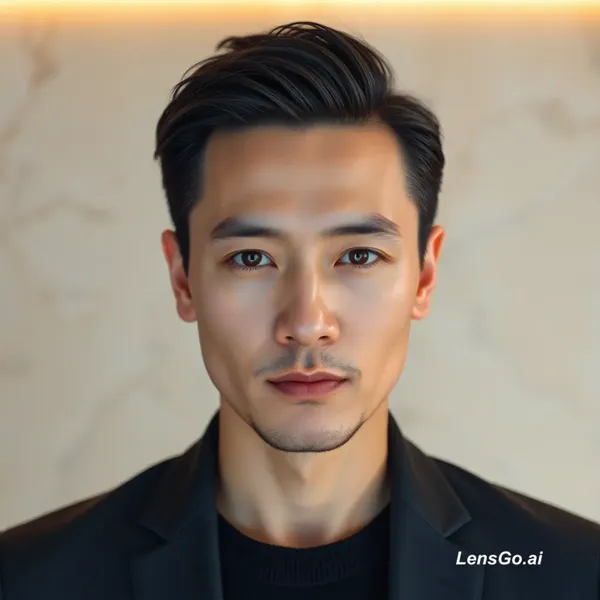 Professional cinematic portrait, luxury minimalist marble background, earth tones, beige and warm grey, soft LED lighting, 8k resolution, highly detailed, realistic textures.