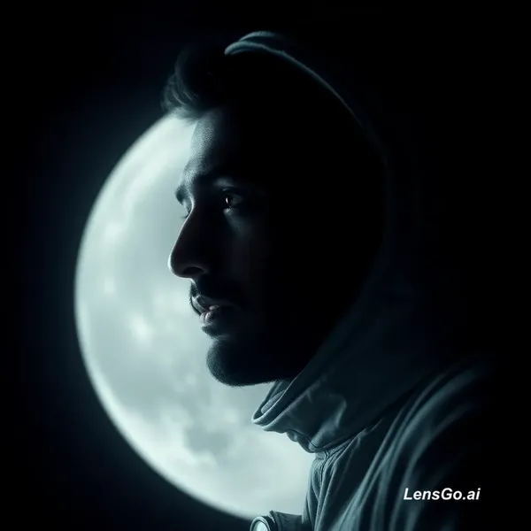 AI Image: Create a cinematic YouTube video. Topic: A man name Himayath Mohammed stuck alone on the Moon trying