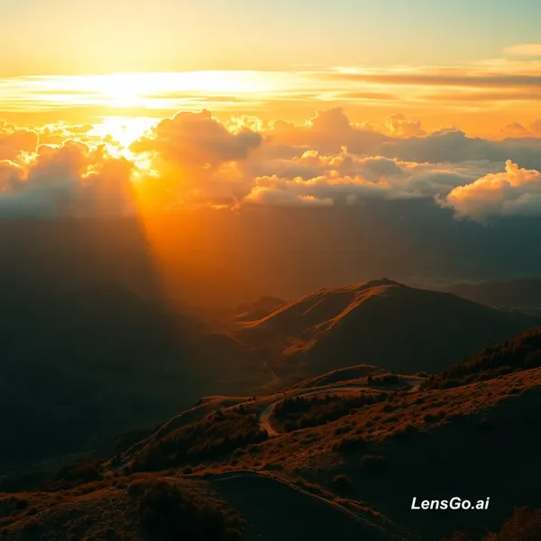 AI Image: Breathtaking cinematic landscape photo, golden hour lighting, dramatic clouds, vibrant colors, ultra