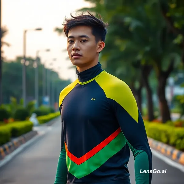 AI Image: "Foto fotorealistik 4K ultra-detail, seorang pria muda Asia Tenggara yang atletis dan berwibawa (Ark