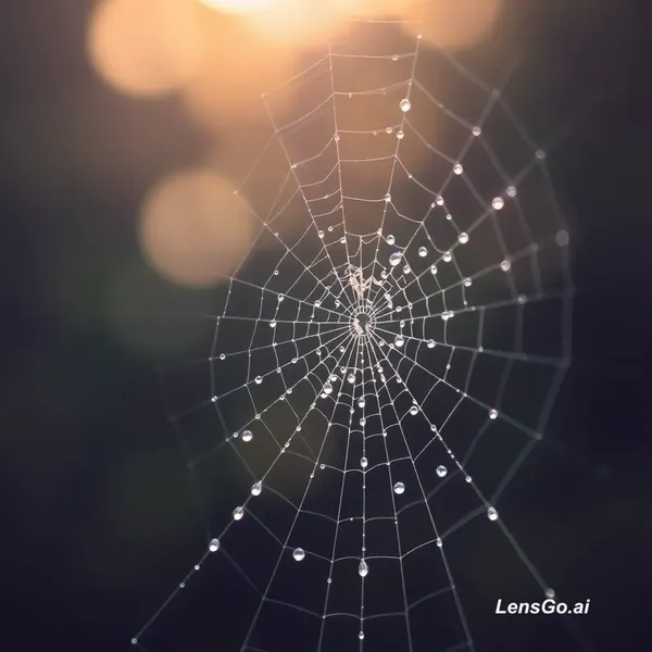 AI Image: Macro photograph of morning dew on spider web, bokeh background