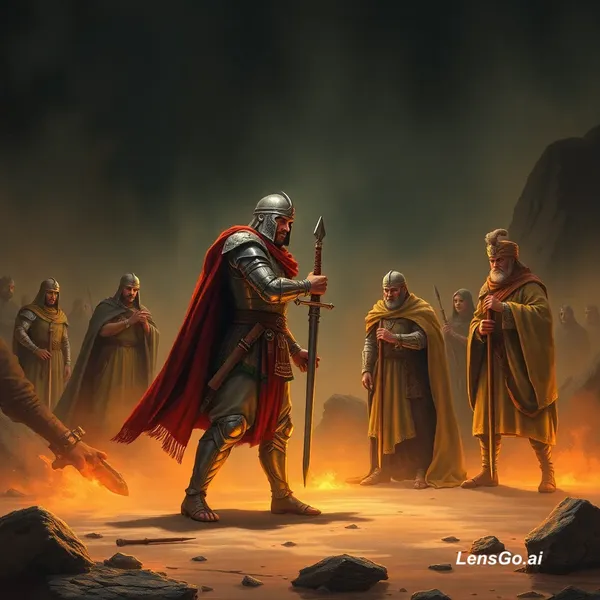 AI Image: make the warrior stand and argue with royal ministers