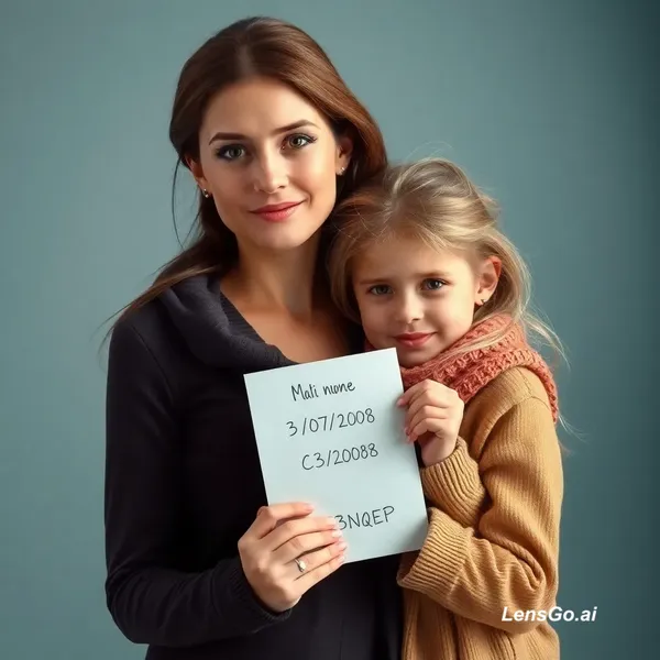 Allora deve essere realisticissima in 8k mi raccomando realistica con una mamma e una figlia però la figlia deve avere un aspetto grande almeno di 17 anni con lei che tiene un pezzo di carta con scritto la sua data di nascita ovvero 3/07/2008 e poi sempre nel pezzo di carta ci deve essere scritto sto codice C3NQEP mi raccomando l'immagine della figlia e la mamma deve essere realistica e anche con le descrizioni che ti ho dato