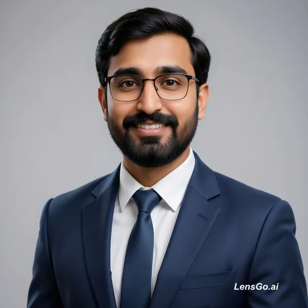 Create a polished, professional headshot of a stylized character (not photorealistic), with clean lighting, a neutral studio background, and a confident, approachable expression. The character should wear modern business attire and have a refined, high-quality illustrated or semi-3D look suitable for LinkedIn or corporate branding.